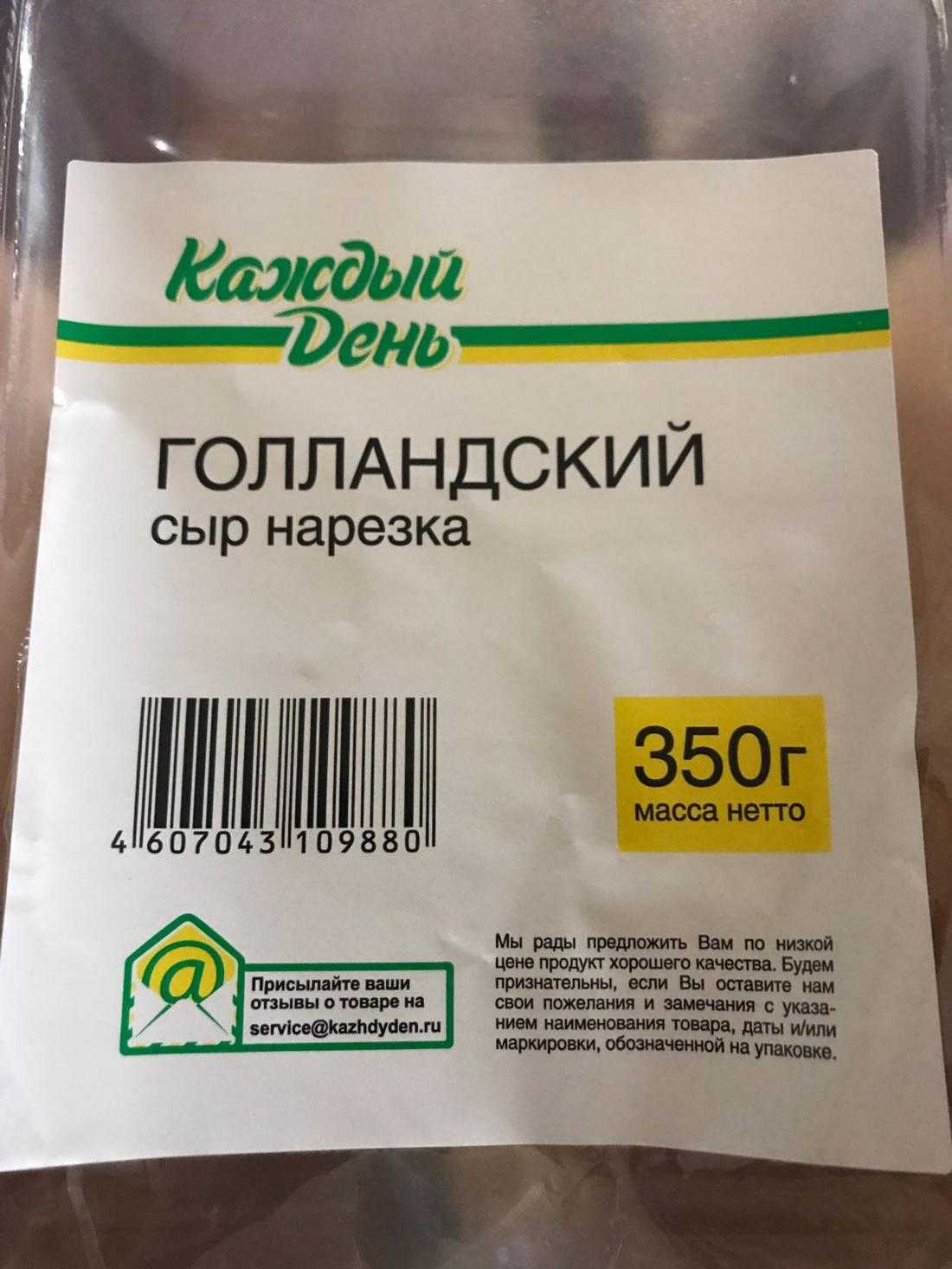 Так же, как и пошехонский, голландский «Каждый день» содержит чересчур много фосфатов и недостаточно молочного остатка, чтобы называться идеальным. Впрочем, доступная цена и натуральность с лихвой возмещают эти огрехи.