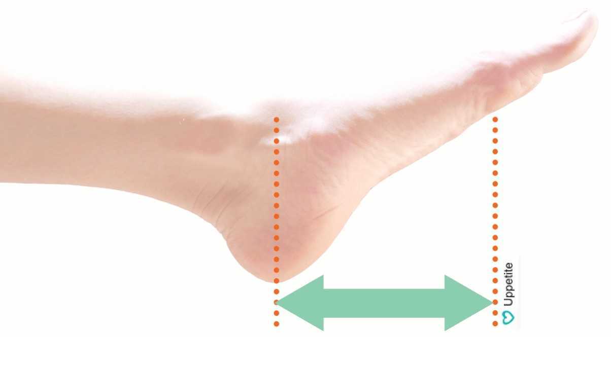 - Возьмите сантиметровую ленту и аккуратно измерьте расстояние от края пяточки до кончика большого пальца (ленту держите параллельно полу). Затем перпендикулярно проведите мысленную линию от подушечки стопы к ленте. То количество сантиметров на ленте в итоге и будет вашей идеальной высотой.