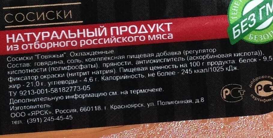 - Конечно, в первую очередь, смотрим на состав сосисок и проверяем положили ли нам туда мясо. Оно должно стоять в самом начале списка. Там не должно быть растительного белка и крахмала. Также пытаемся выбрать те, что имеют в составе минимум красителей, стабилизаторов и усилителей вкуса (всяких Е).