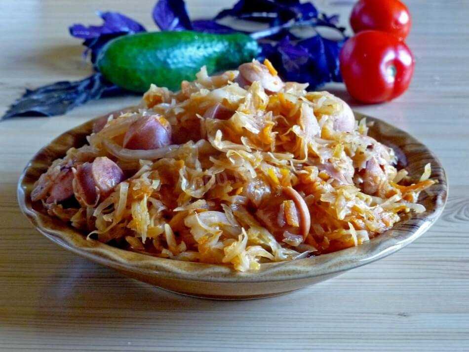 Тушеная капуста с сосисками — очень вкусный рецепт