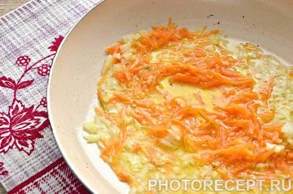 - Мелко измельчить овощи, обжарить на масле до мягкого состояния.
