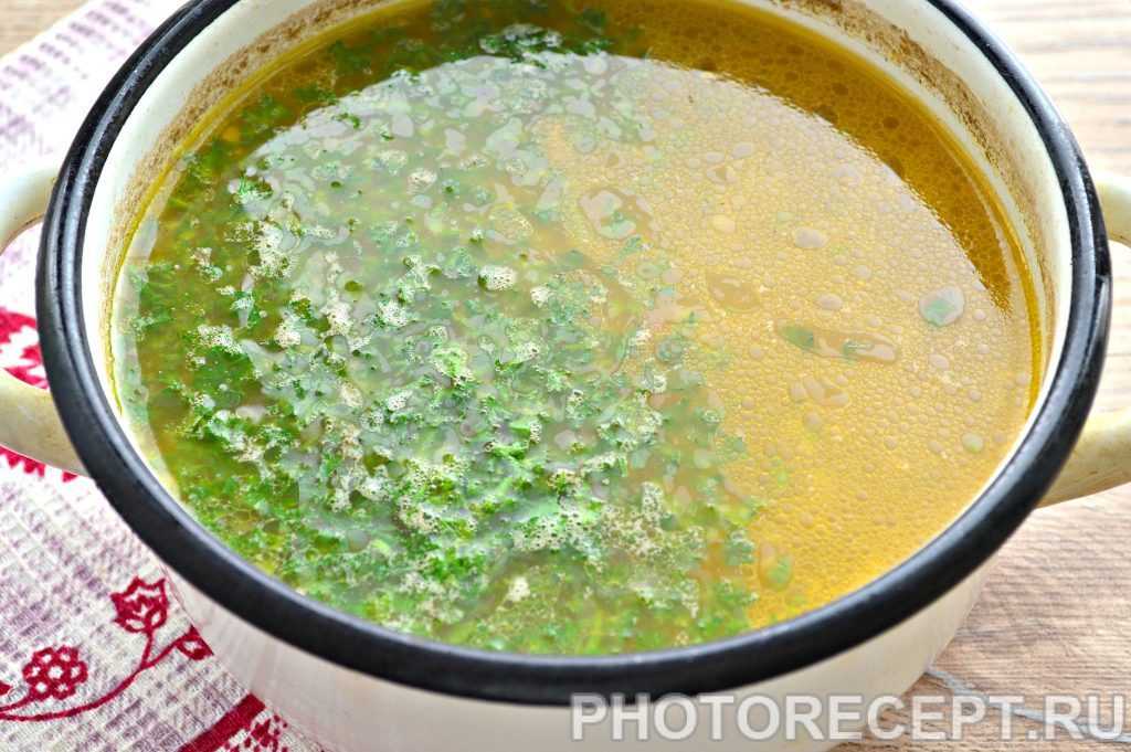 - Добавить в суп пассерованные овощи, поваренную соль.