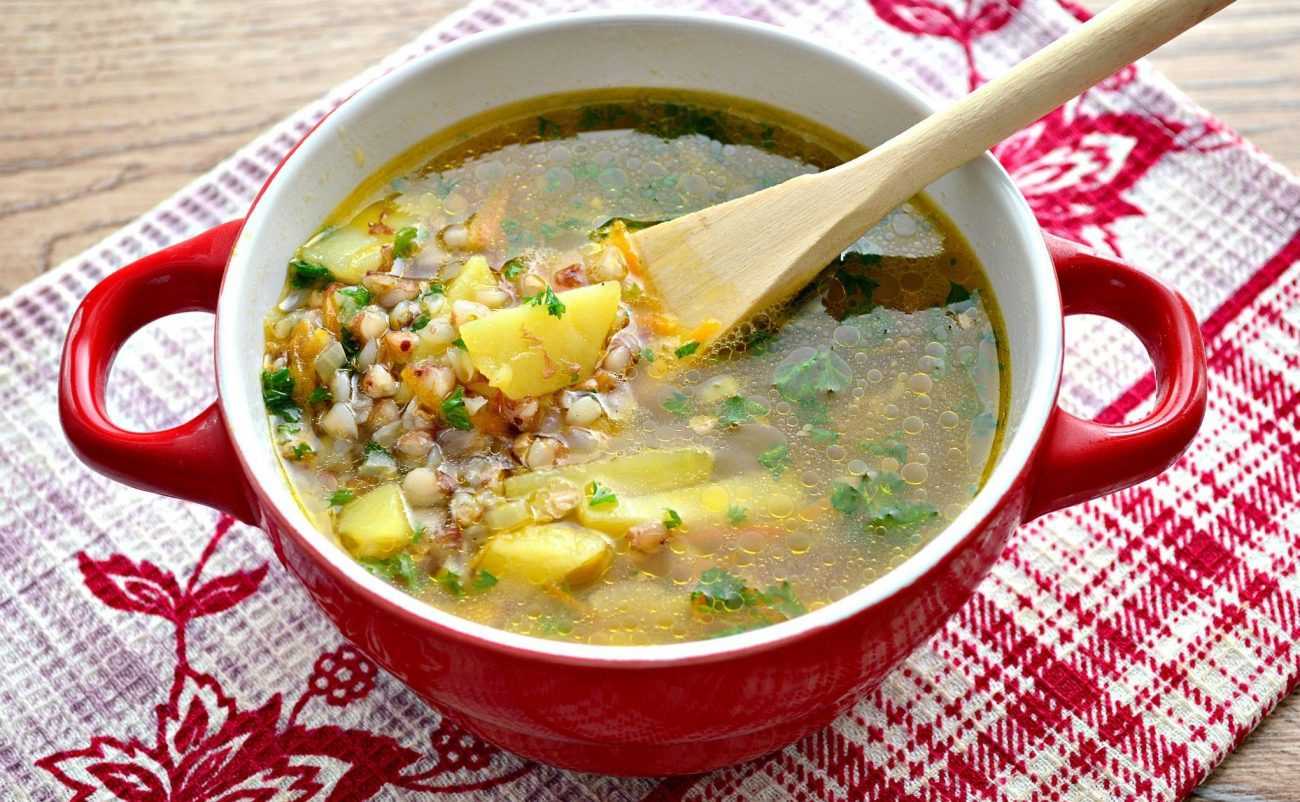 Гречневый суп – вкусное и полезное обеденное блюдо для всей семьи. Готовить его можно на мясном или овощном бульоне. В гречке содержится много железа, а мясной бульон насыщает организм белком, дарит чувство сытости и наполняет силами на весь день.