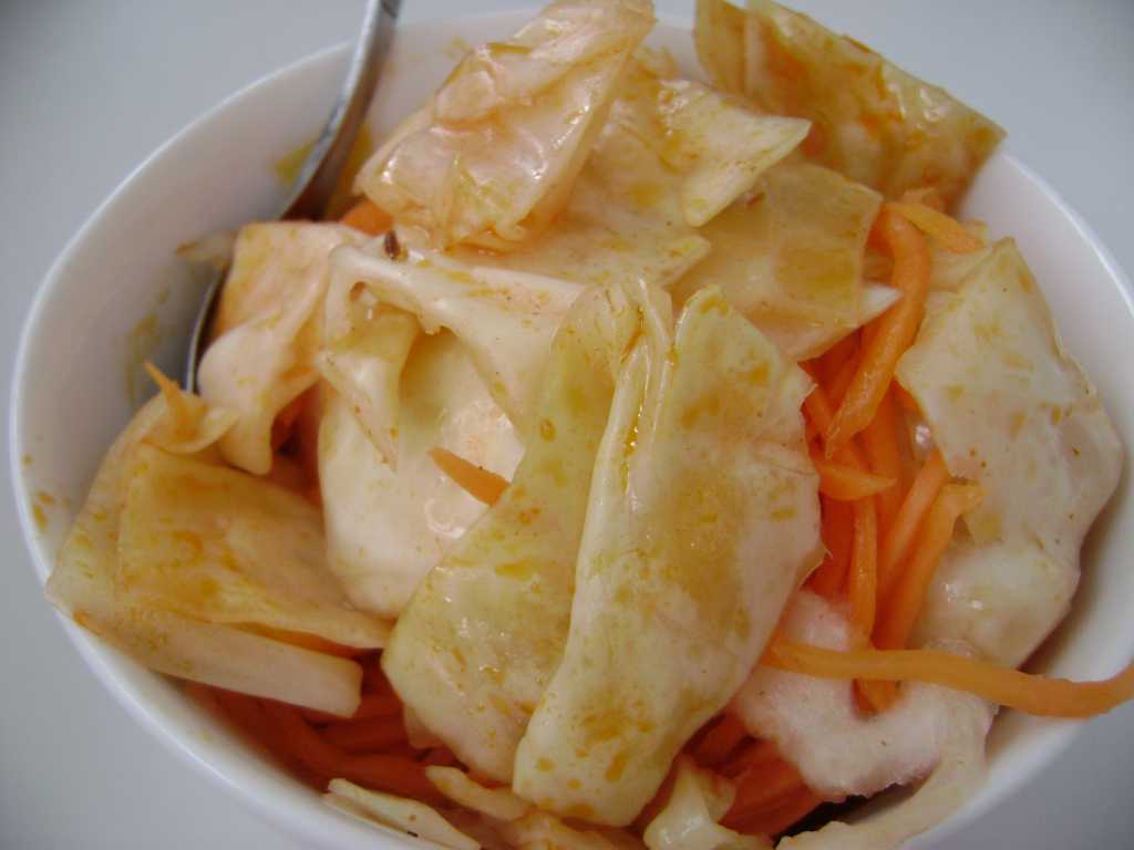 - Залить капусту полученным маринадом, перемешать, остудить и поставить в холод.