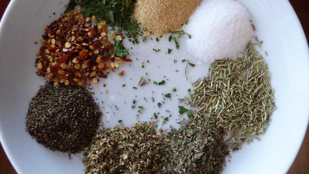 - В полученную смесь необходимо добавить в небольшом количестве специи. Далее можно увеличить их присутствие, регулируя вкус заправки.