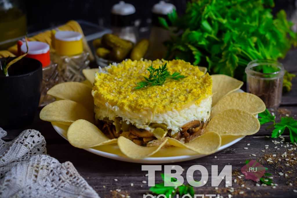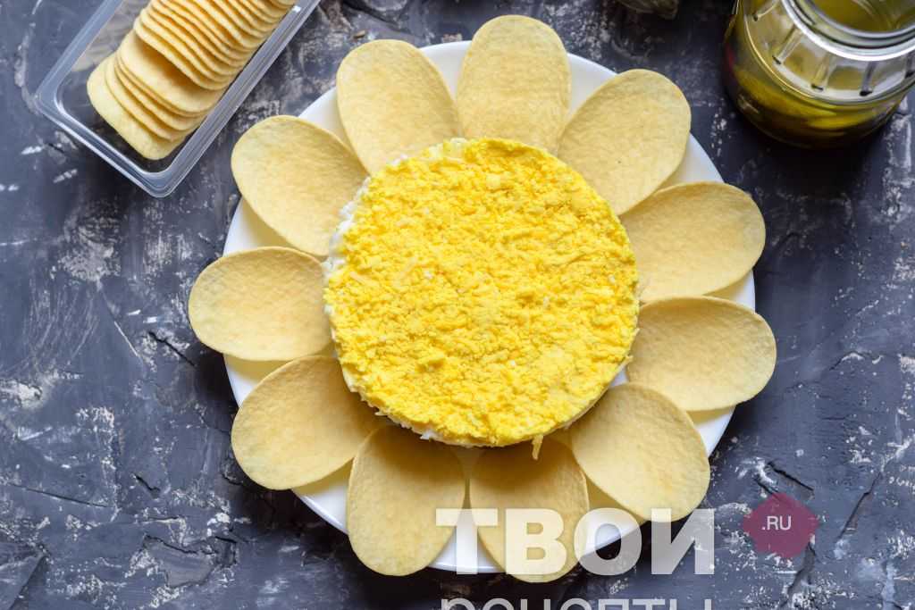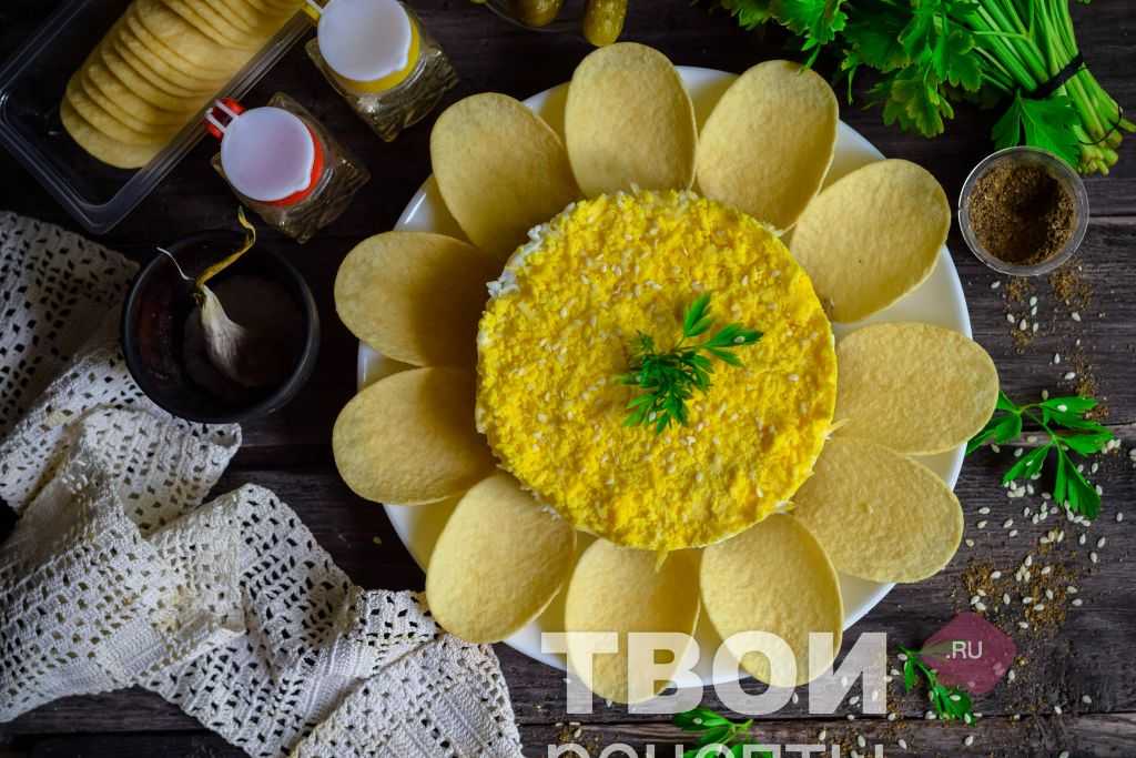 Рецепт 2: салат Ромашка с картофельными чипсами