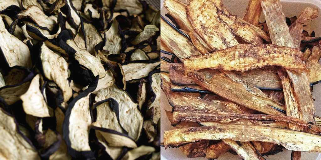 Слева плоды, высушенные естественным путём, справа – в духовке.