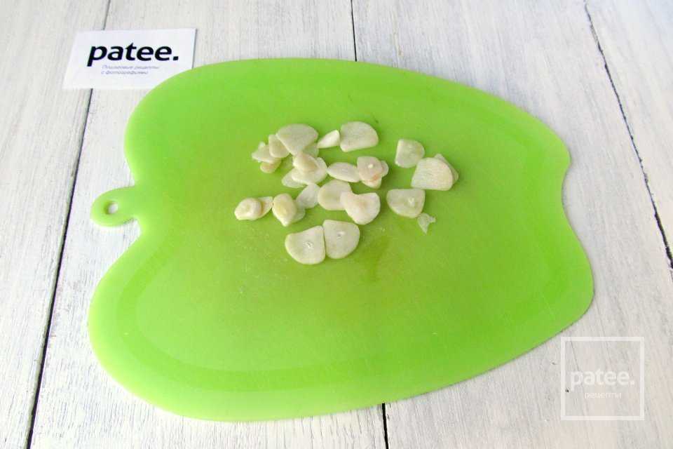 Чеснок чистим и нарезаем тонкими пластинками.